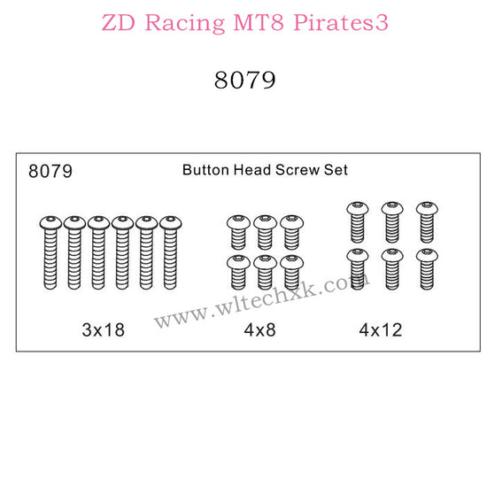ZD Racing MT8 Pirates3 Parts Button Head Screw Set 8079